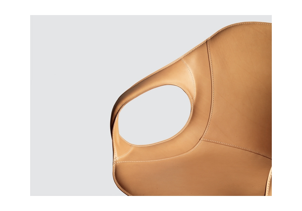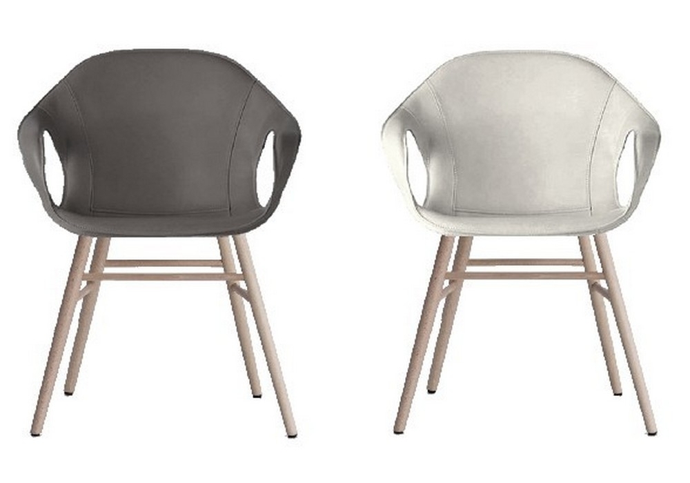 Elephant diseñada por Eva Paster & Michael Geldmacher para Kristalia es una silla con base en madera disponible en varios acabados y carcasa en poliuretano con tapizado en piel, piel plena flor o tejido.