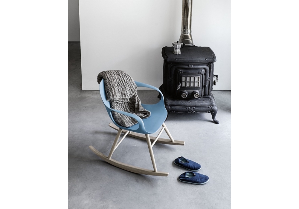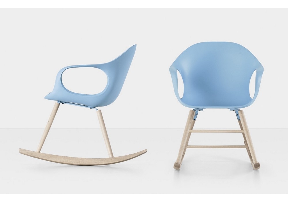 Elephant diseñada por Eva Paster & Michael Geldmacher para Kristalia es una mecedora con base de madera disponible en varios acabados y carcasa de poliuretano propuesta en diferentes colores.