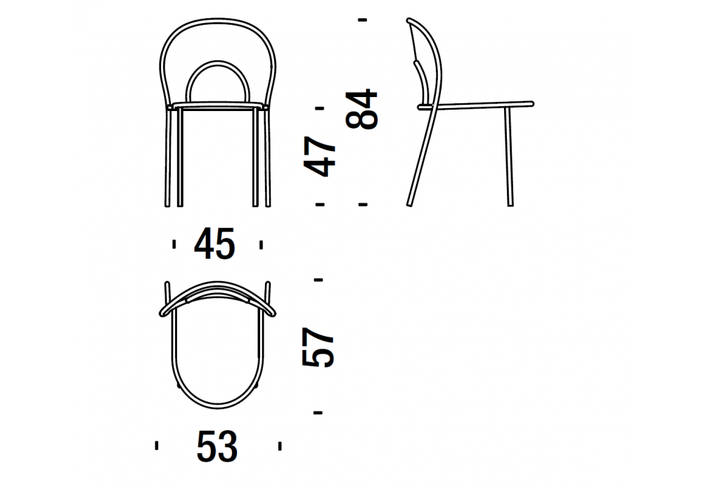 Banjooli diseñada por Sebastian Herkner para Moroso es una silla con estructura de acero pintado e hilos de polietileno de colores tejidos a mano. Plantillas de PVC.