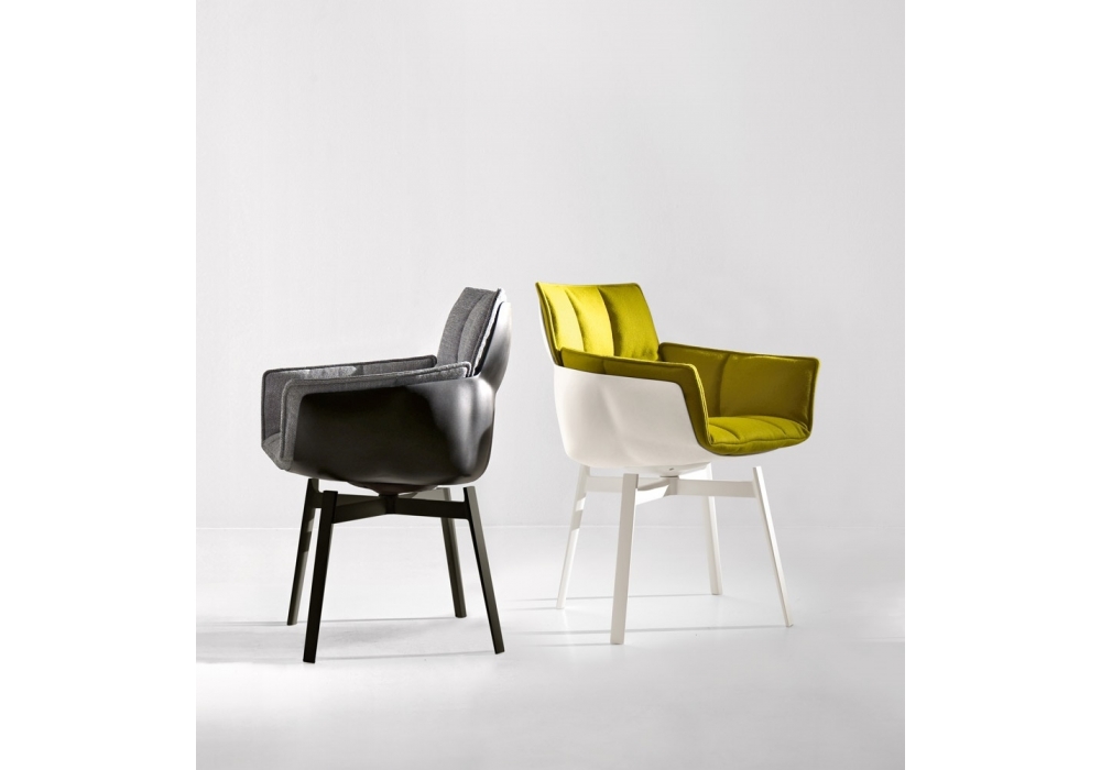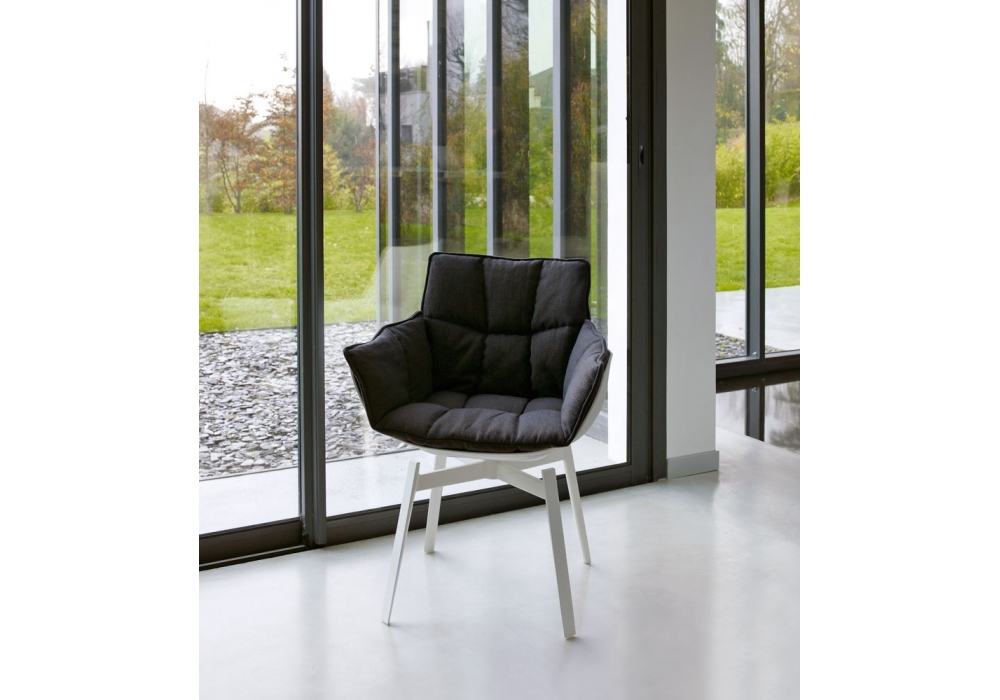 Husk diseñada por Patricia Urquiola para B&B Italia es una silla con estructura de aluminio pintado, carcasa de Baydur® en diferentes acabados o revestida en piel. Tapicería en tejido o piel. Disponible en versión fija o giratoria.