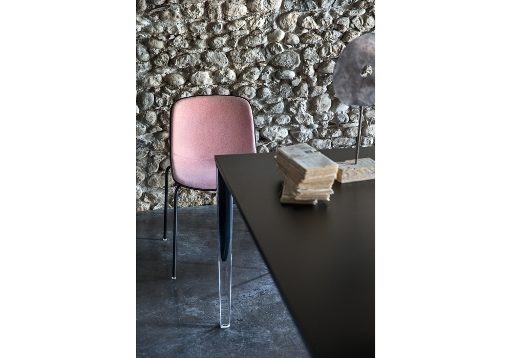 Troy Chair Fabric diseñada por Marcel Wanders para Magis es una silla con estructura en tubo de acero cromado o pintado poliéster, asiento en poliéster o haya. Asiento con frente acolchado en poliuretano y tapizado en tejido o piel.