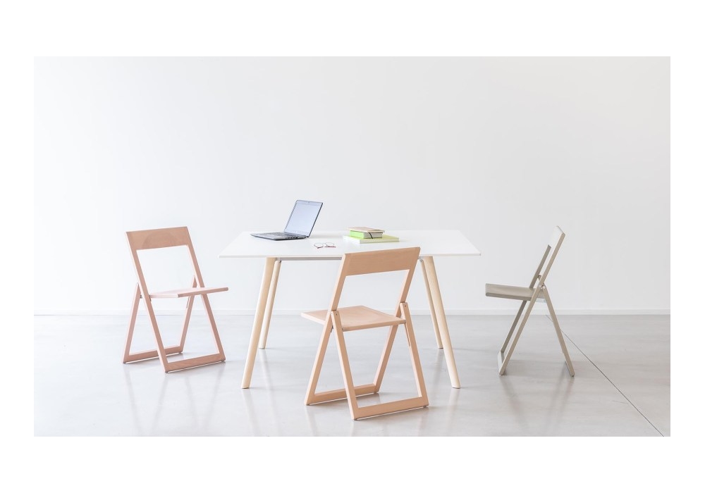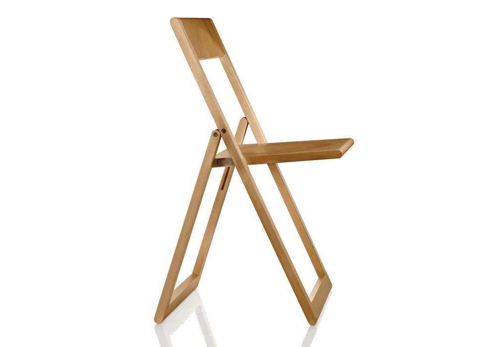 Aviva diseñada por Marc Berthier para Magis es una silla plegable realizada en haya maciza, natural o pintada en diferentes acabados.