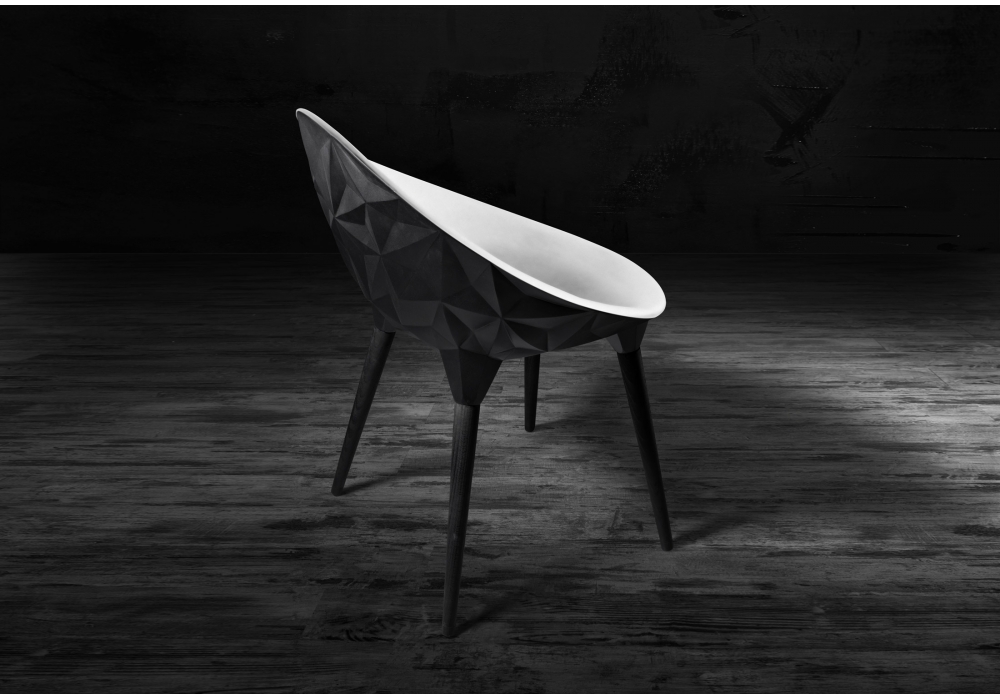 Rock is the chair designed by Diesel with Moroso. The Rock chair was inspired by the geometric structure of crystals and minerals, which occur naturally creating amazing, perfect shapes. It combines the visual impact and recognisability of its edges with its seats’ streamlined, ergonomic form. Shell in structural polyurethane, feet in beech and glides in nylon.