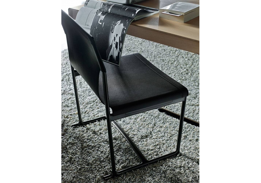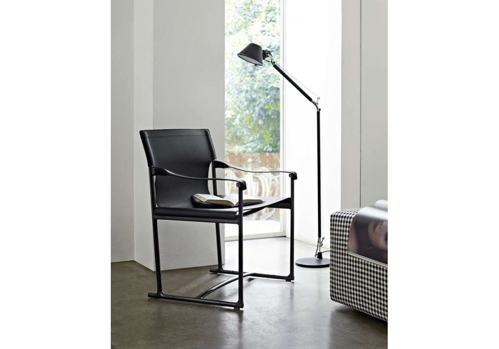 Mirto Indoor diseñada por Antonio Citterio para B&B Italia es una silla con estructura de aluminio fundido a presión cromado o pintado y tapizada en piel en diferentes acabados. Disponible en la versión con o sin brazos.