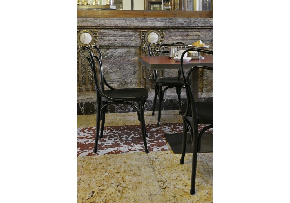 Loos Cafè diseñada por Adolf Loos para Gebrüder Thonet Vienna es una silla con estructura en haya curvada con sección elíptica, disponible en diferentes acabados. Asiento en madera contrachapada o paja de Viena.