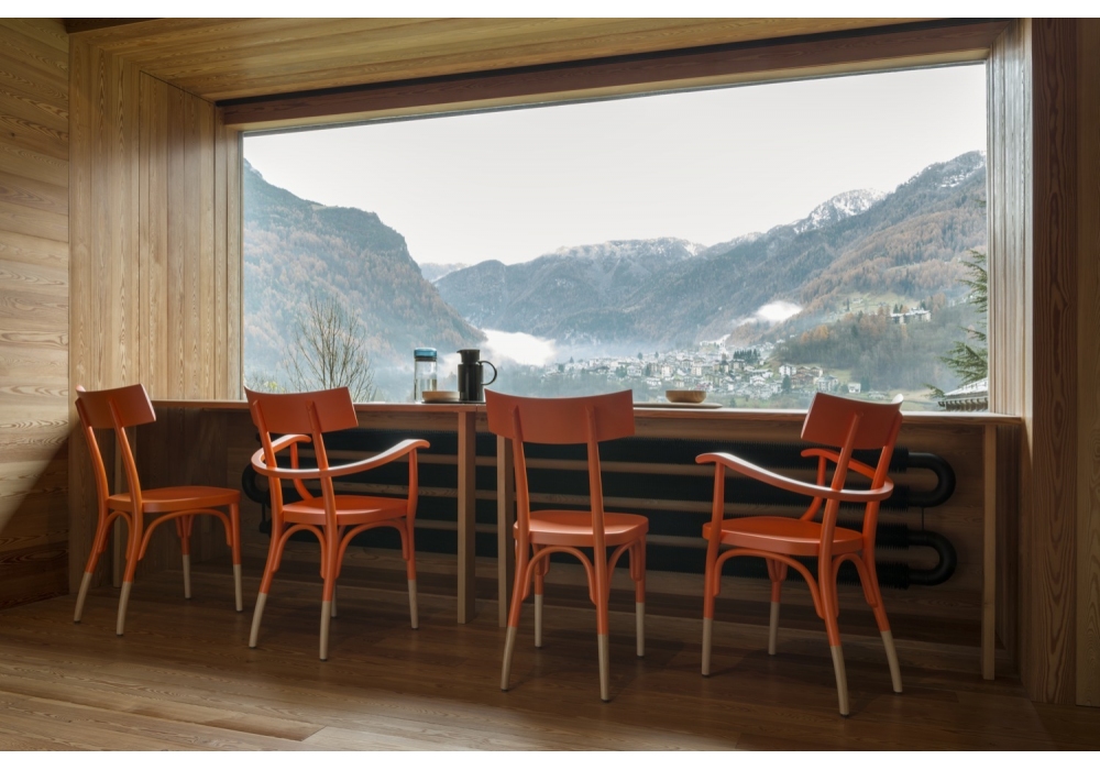 Czech diseñada por Hermann Czech para Gebrüder Thonet Vienna es una silla de haya curvada disponible en diferentes acabados, con o sin apoyabrazos. La versión lacada también está disponible con o sin medias de haya natural.
