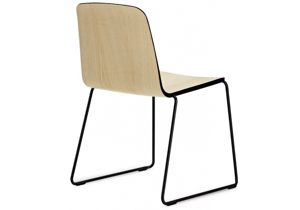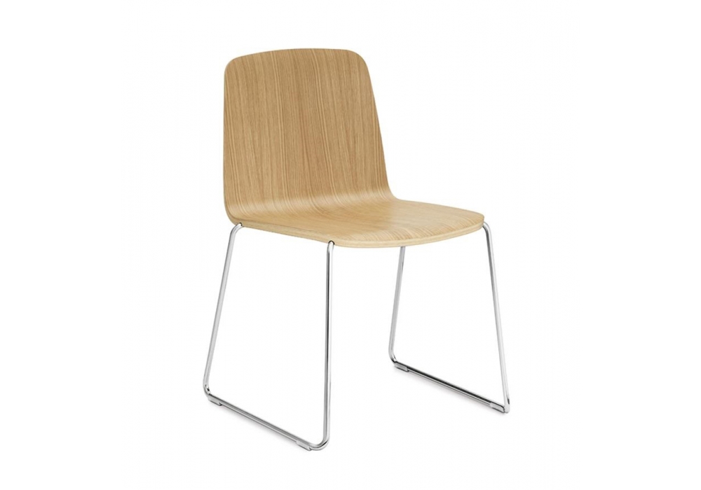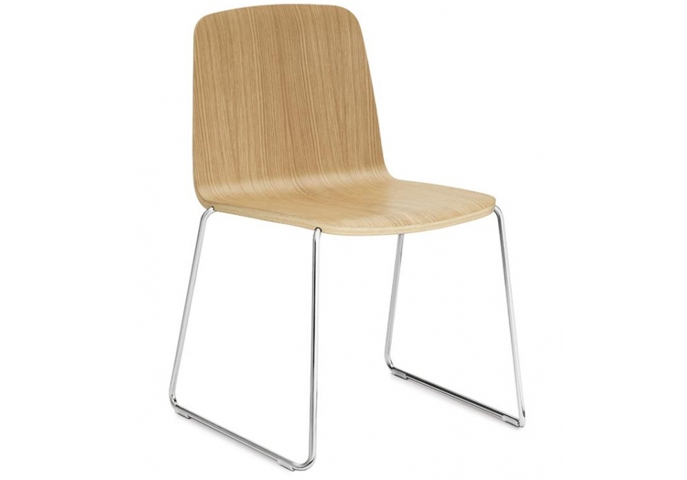 Just, diseñada por Iskos – Berlin para Normann Copenhagen es una silla, estructurada por una base de acero tubular. El asiento y el respaldo son de una sola pieza modelados en madera de fresno o roble. Just Chair está disponible en diferentes modelos, con estructura cromada o lacada en polvo o asiento en roble o fresno.
