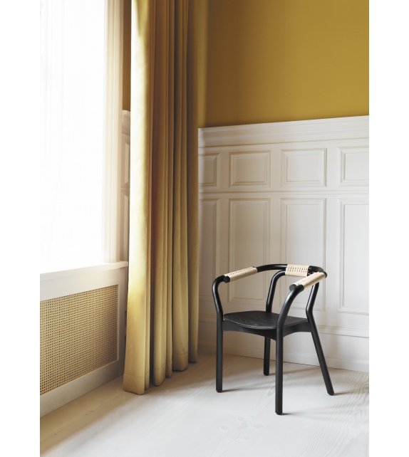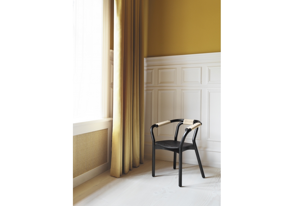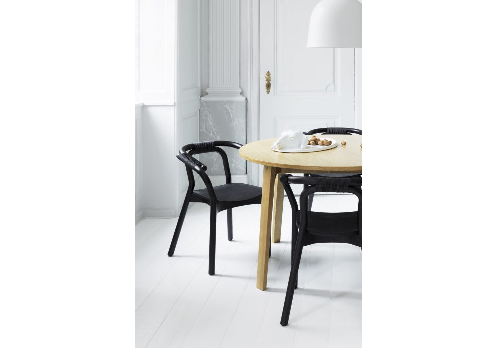 Knot, diseñada por Tatsuo Kuroda para Normann Copenhagen, es una silla realizada íntegramente en madera de fresno negro. El asiento es siempre de madera ligeramente curvada, mientras que el respaldo y los reposabrazos son de madera tubular intersectados armoniosamente con la estructura y unidos por un tejido de cuerda de papel. Knot está disponible en dos versiones, estructura y detalles en cuerda negra, o estructura negra y detalles en cuerda natural clara.