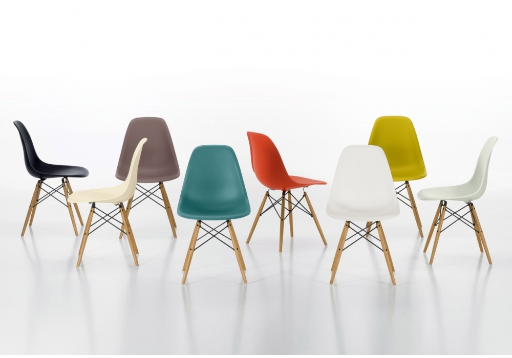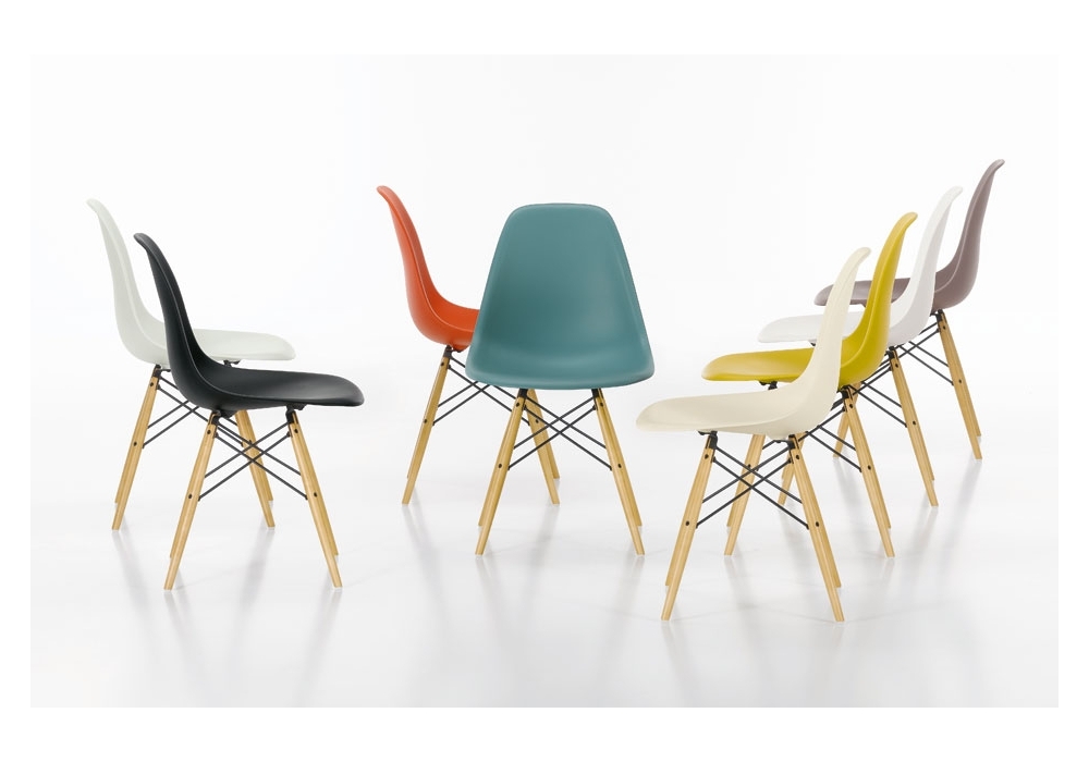 Vitra Eames Plastic side chair DSW silla: Charles & Ray Eames, 1950. La Eames Plastic Side Chair es la producción moderna de la legendaria Fiberglass Chair.