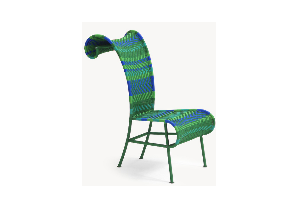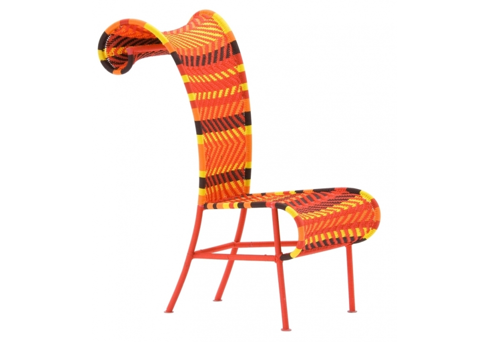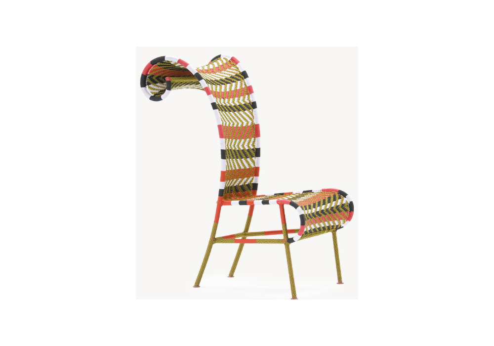 Sunny diseñada por Tord Boontje para Moroso es una silla con estructura de acero pintado y tejidos de colores obtenidos del procesamiento manual de diferentes hilos de polietileno. Plantillas de goma. Los artículos de la colección están elaborados artesanalmente: cada producto es una pieza única y las diferencias de colores y tejidos no se consideran defectos.