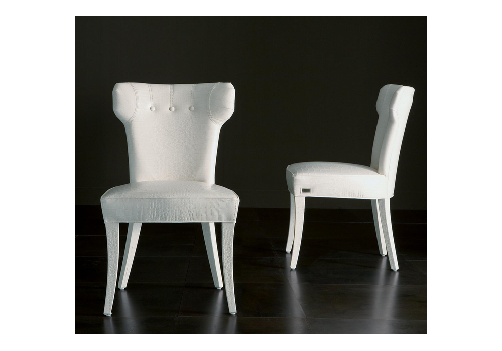 Guenda diseñada por Rugiano es una sillon con tapa con asiento y patas tapizadas en tejido o piel en diferentes acabados.