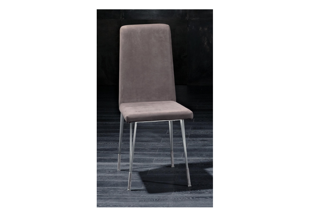 Yuki diseñada por Rugiano es una silla con estructura de acero en acabado latón bronceado y asiento tapizado en piel en diferentes acabados.