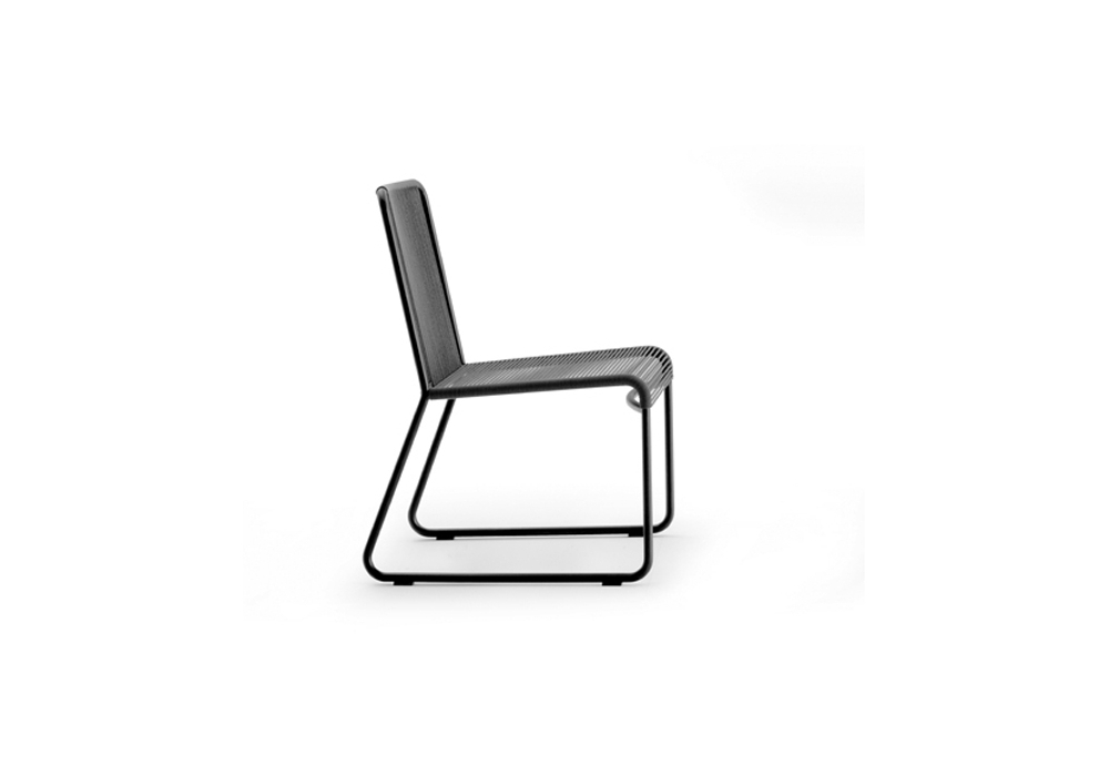 Harp 349 is an outdoor chair designed by Rodolfo Dordoni for Roda. The classic string chair finds a new outdoor dimension, where polyester trails its infinite filaments around a tubular stainless steel structure in one continuous outline. Harp is a celebration of a craft manufacturing.