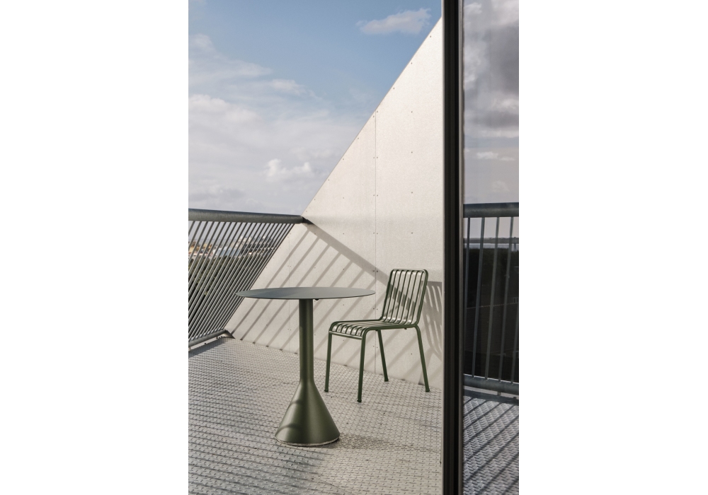 Palissade diseñada por Ronan & Erwan Bouroullec para Hay es una silla para exteriores realizada en acero pintado en polvo o galvanizado en caliente. Es posible añadir el cojín del asiento como accesorio. Disponible en diferentes acabados.