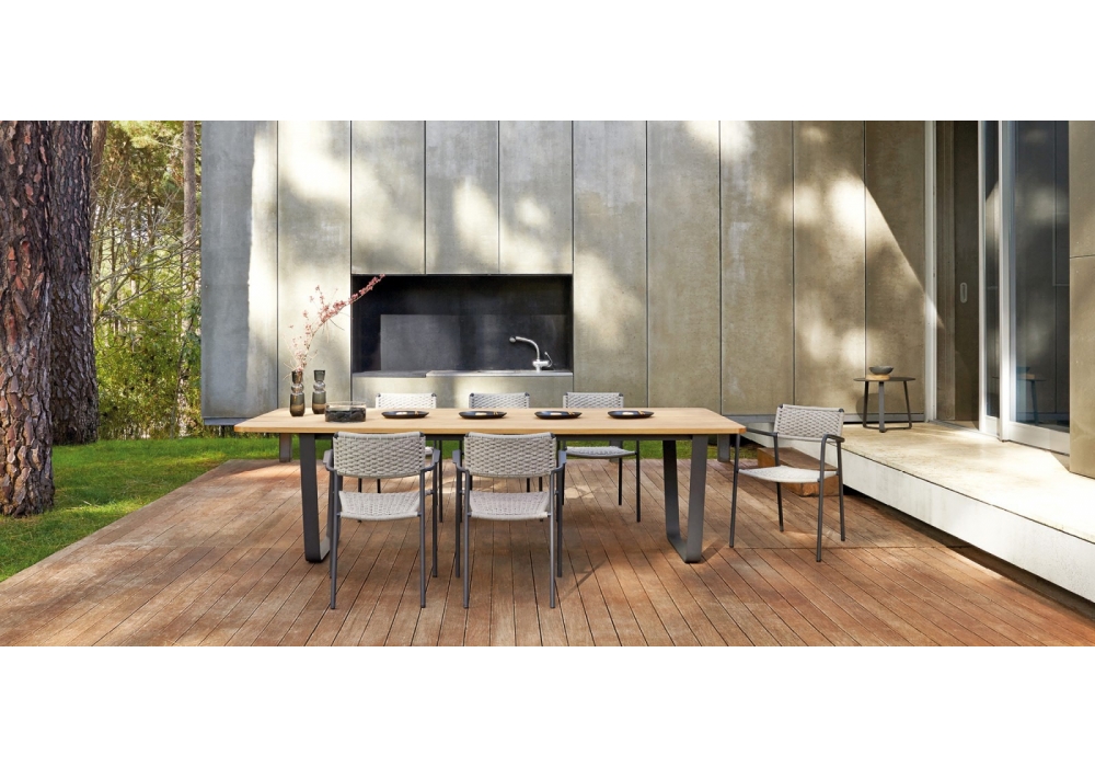 Echo por Manutti es una silla con asiento y respaldo en cuerda tejida. Es una combinación contemporánea y vintage con componentes tales como el respaldo alto, curvado, rectangular. Disponible en diferentes acabados.