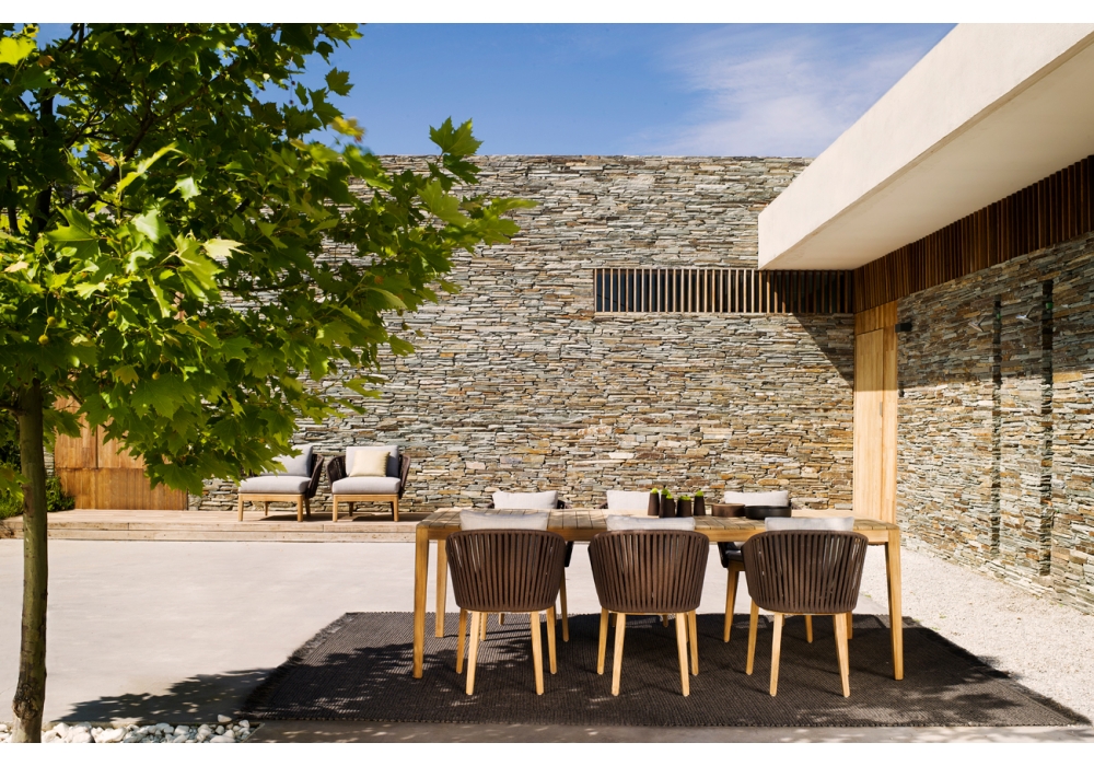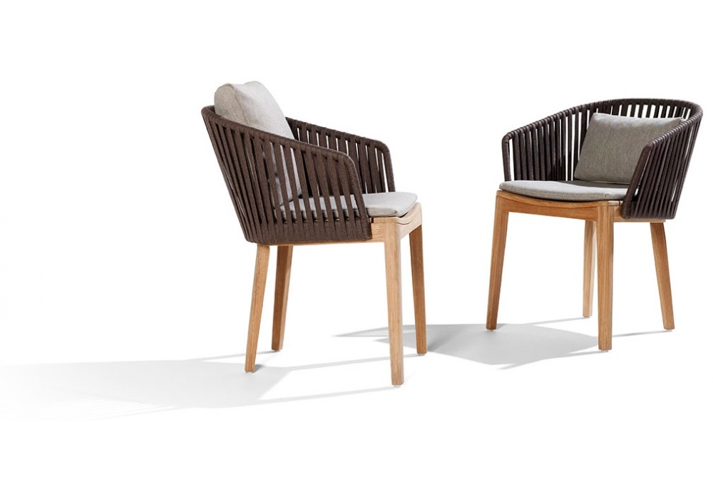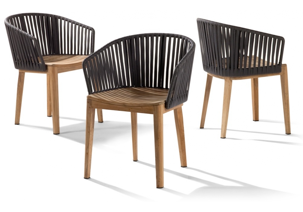 Mood diseñada por Studio Segers para Tribù es una silla con estructura en teca y asiento con tejido en Tricord (polioléfine). El tejido está disponible en diferentes acabados. Cojines de asiento y lumbares incluidos.