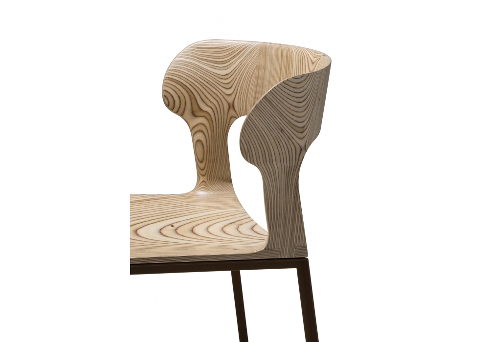 Gea diseñada por Chi Wing Lo para Giorgetti es una silla para exteriores con base de acero inoxidable protegido pintado en polvo carob. Asiento y respaldo en contrachapado de abedul con efecto rugoso.