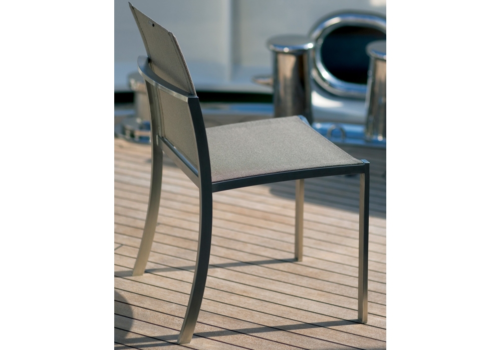 O-Zon diseñada por Kris Van Puyvelde para Royal Botania es una silla con estructura en acero inoxidable o aluminio. Asiento y respaldo tapizado en batyline®. Disponible en diferentes acabados.