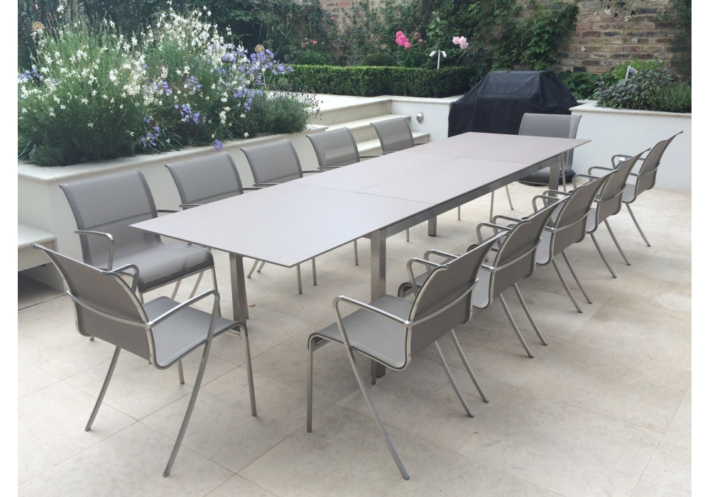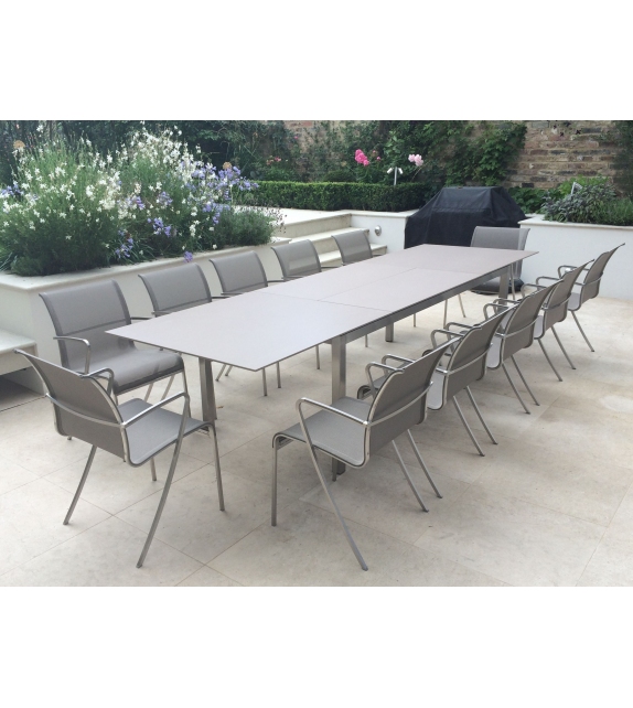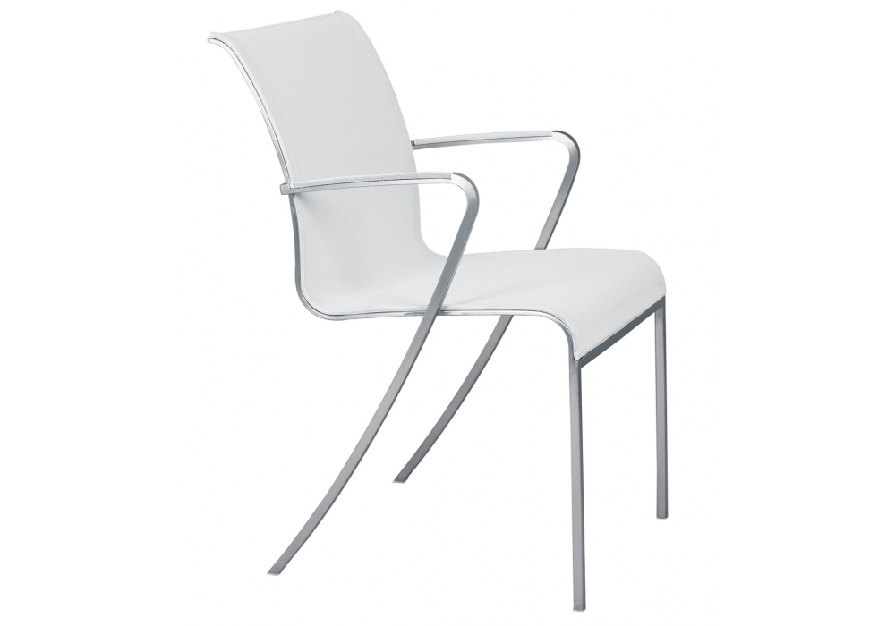 QT diseñada por Kris Van Puyvelde para Royal Botania es una silla con estructura en acero inoxidable. Revestimiento de asiento y respaldo en Batyline®. Realizada en diferentes acabados.