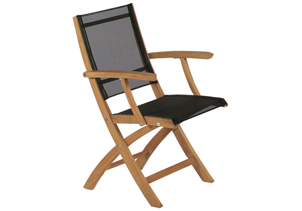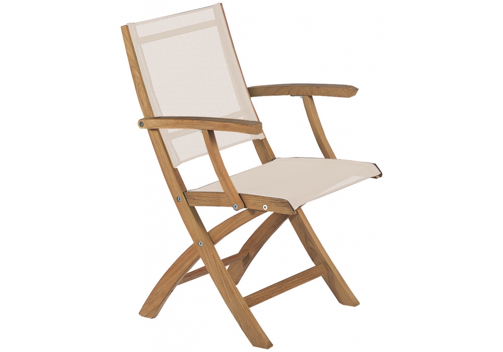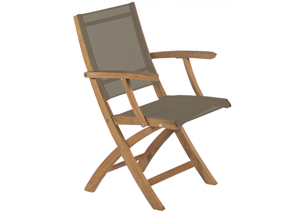 XQT diseñada por Kris Van Puyvelde para Royal Botania es una silla plegable con estructura en teca. Revestimiento realizado en Batyline®.