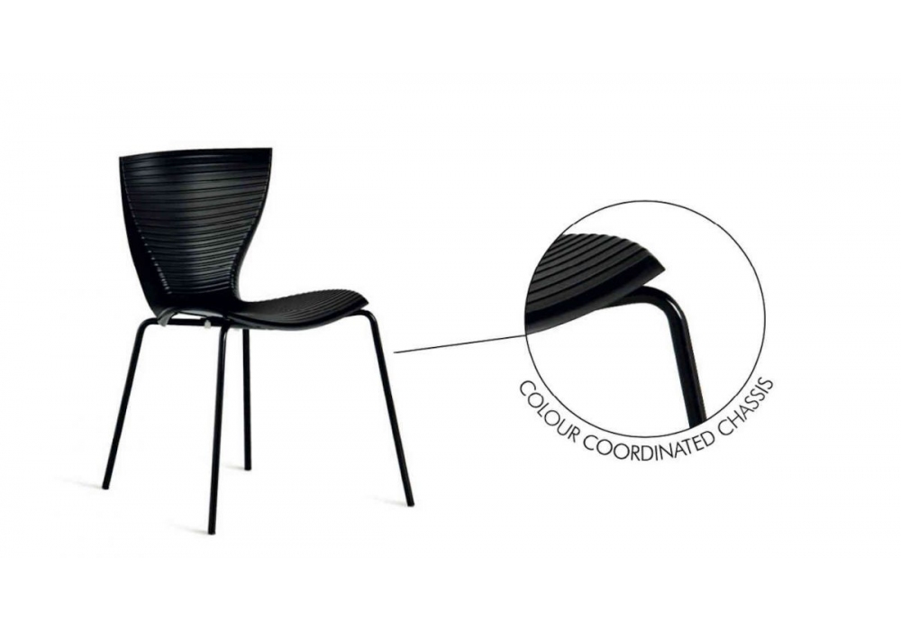 Gloria diseñada por Marc Sadler para Slide es una silla con carcasa de polipropileno y estructura tubular de metal con recubrimiento de polvo. Disponible en 2 versiones