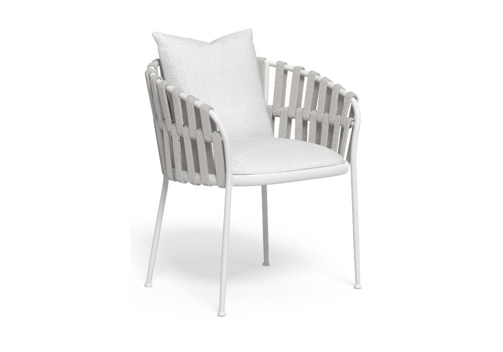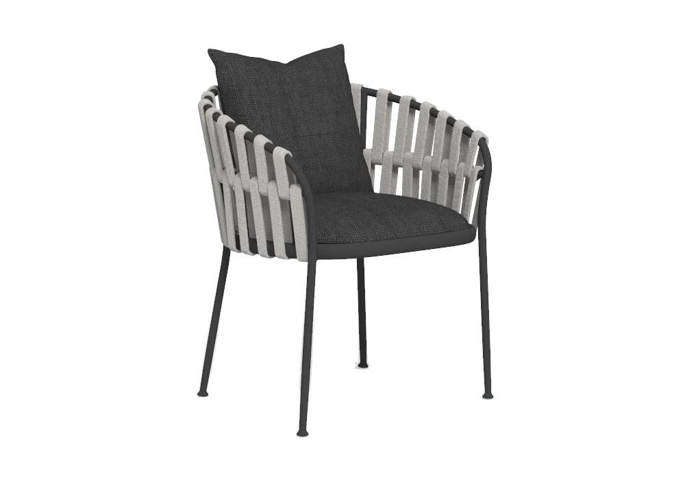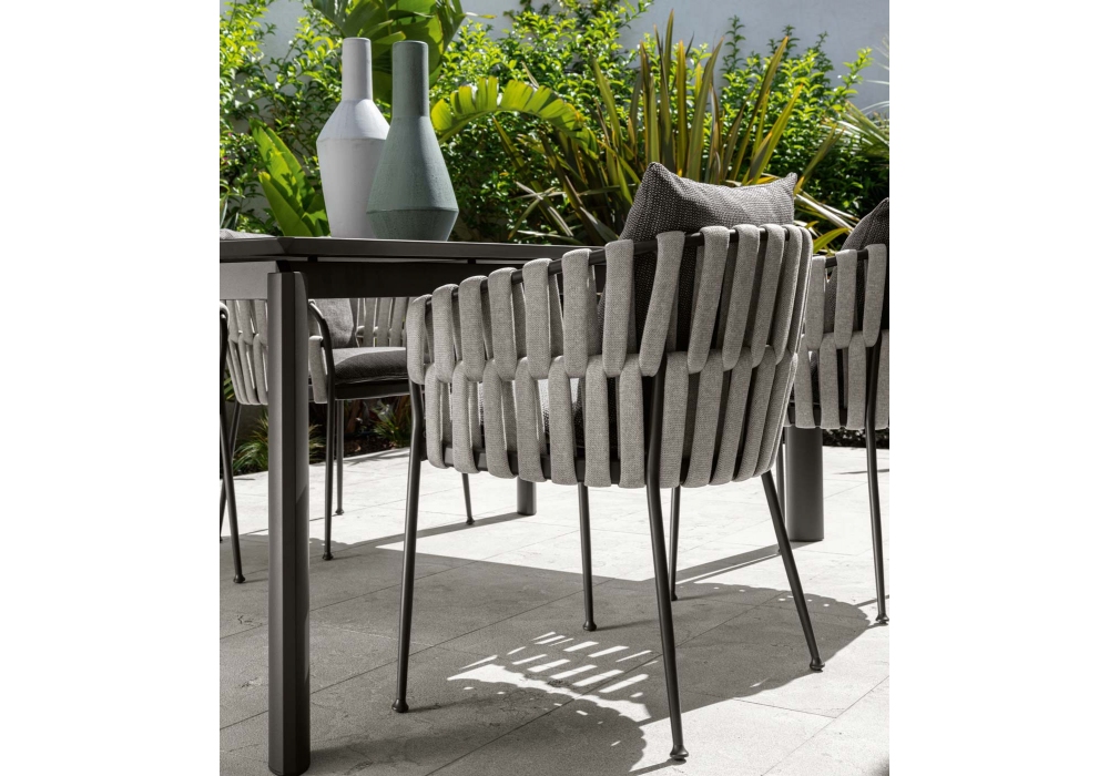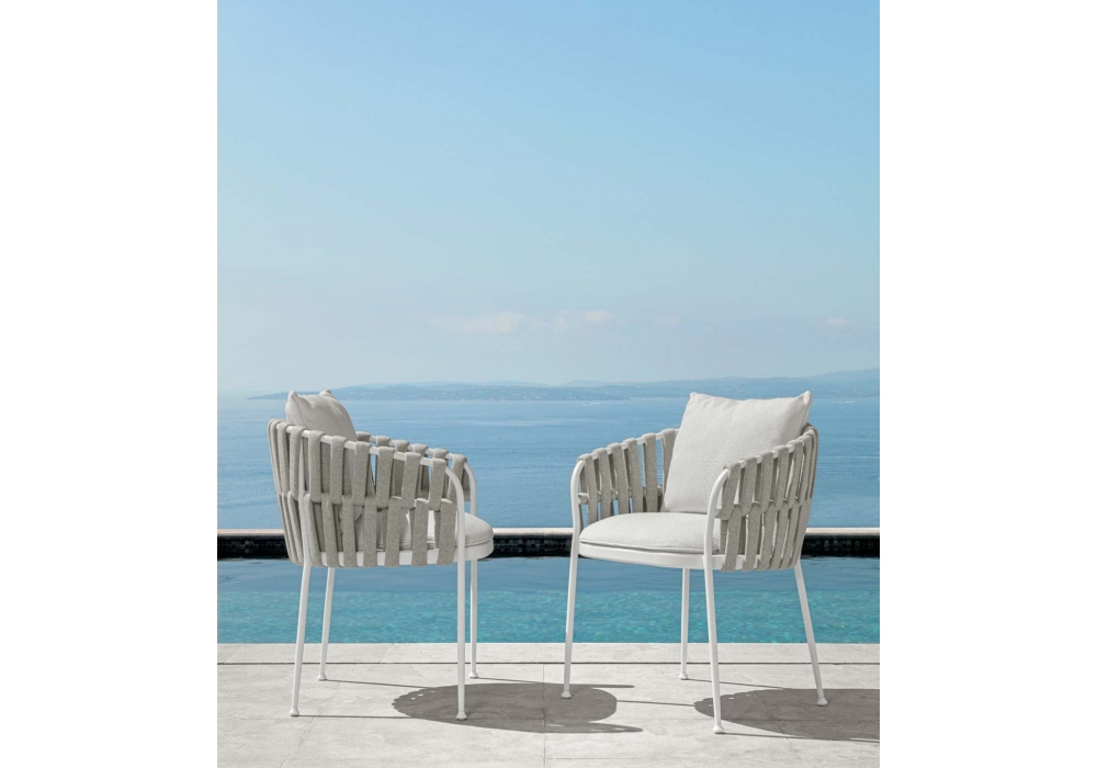 Frame diseñada por Ludovica + Roberto Palomba para Talenti es una silla para uso en exteriores. Estructura en aluminio pintado en polvo. Estructura del respaldo rivestida con cuerda acolchada. Los cojines tienen fundas removibles y están tapizados en telas para exteriores resistentes a la intemperie.