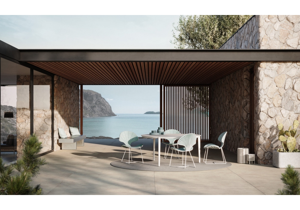 Ostrea diseñada por Mathias De Ferm para Royal Botania es una silla para exteriores con estructura en acero inoxidable. Cojines opcionales.