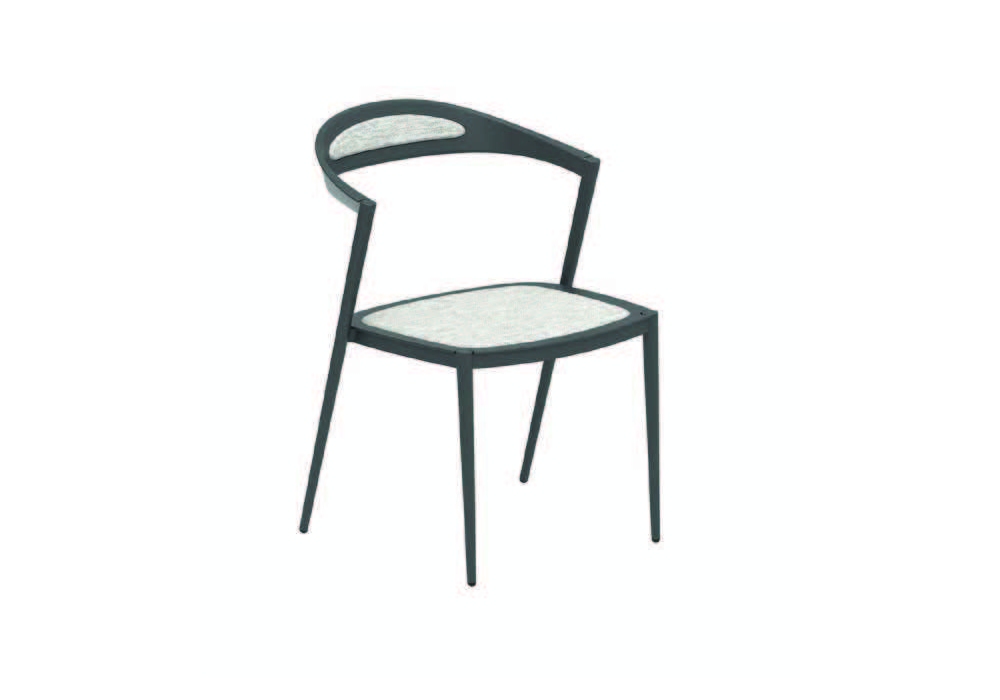 Styletto diseñada por Kris Van Puyvelde para Royal Botania es una silla para exteriores con estructura de aluminio. El tapizado de los cojines del asiento y del respaldo está disponible en diferentes acabados.