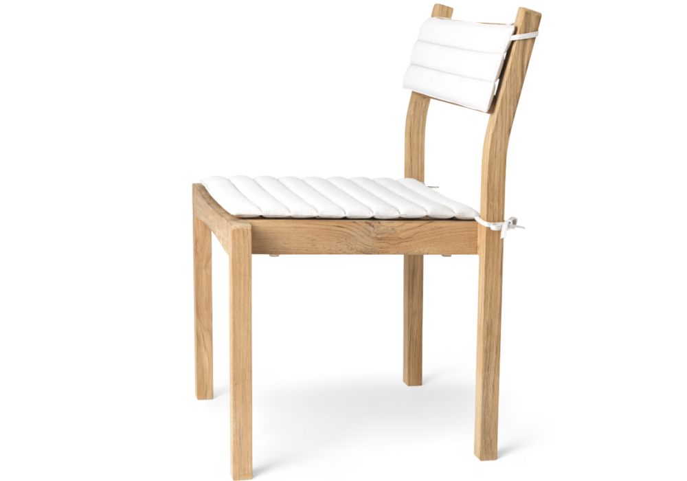 AH501 diseñada por Alfred Homann para Carl Hansen & Søn es una silla para exteriores con estructura de madera maciza de teca. Disponible con o sin cojines de asiento o respaldo, tapizado en tejido Agora Life Oat 1760.