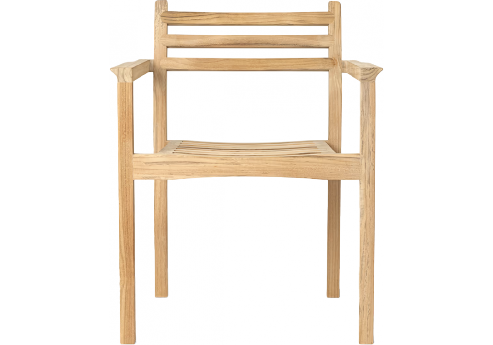 AH502 diseñada por Alfred Homann para Carl Hansen & Søn es una silla para exteriores con reposabrazos con estructura de madera maciza de teca. Disponible con o sin cojines de asiento o respaldo, tapizado en tejido Agora Life Oat 1760.