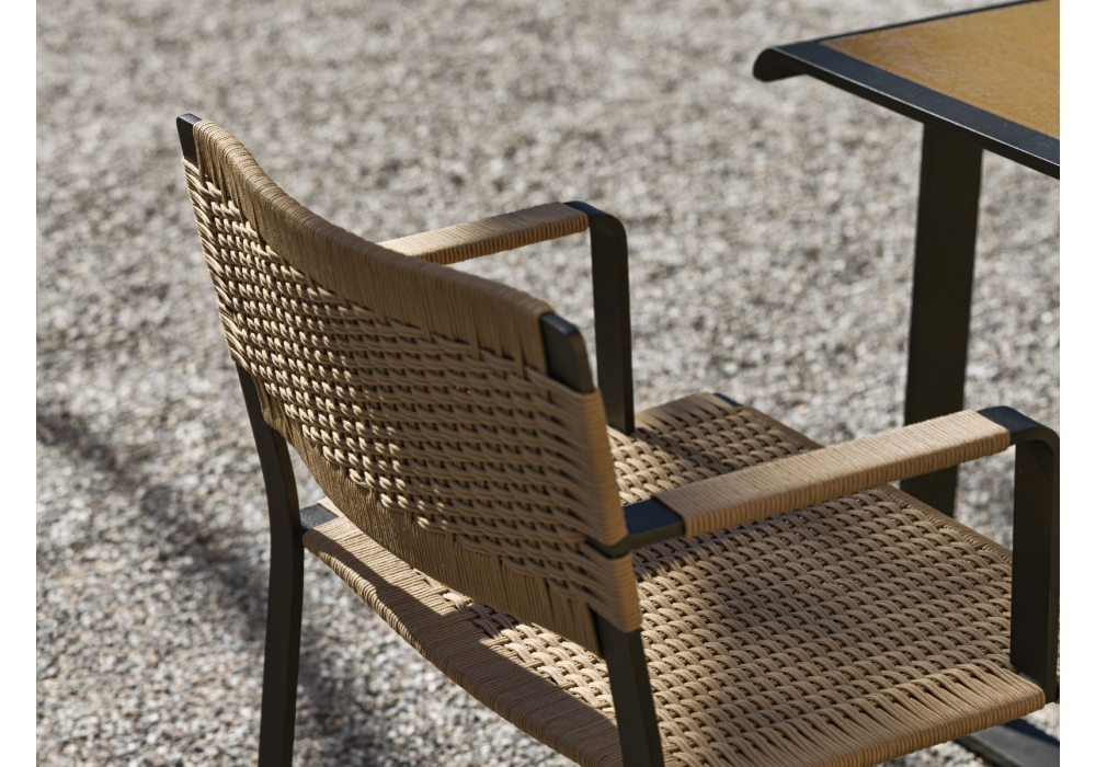 Green Point diseñada por Vincent Van Duysen para Molteni&C es una silla con o sin reposabrazos realizada con estructura de metal bruñido y asiento y respaldo en cuerda trenzada. Cojín de asiento bajo pedido.