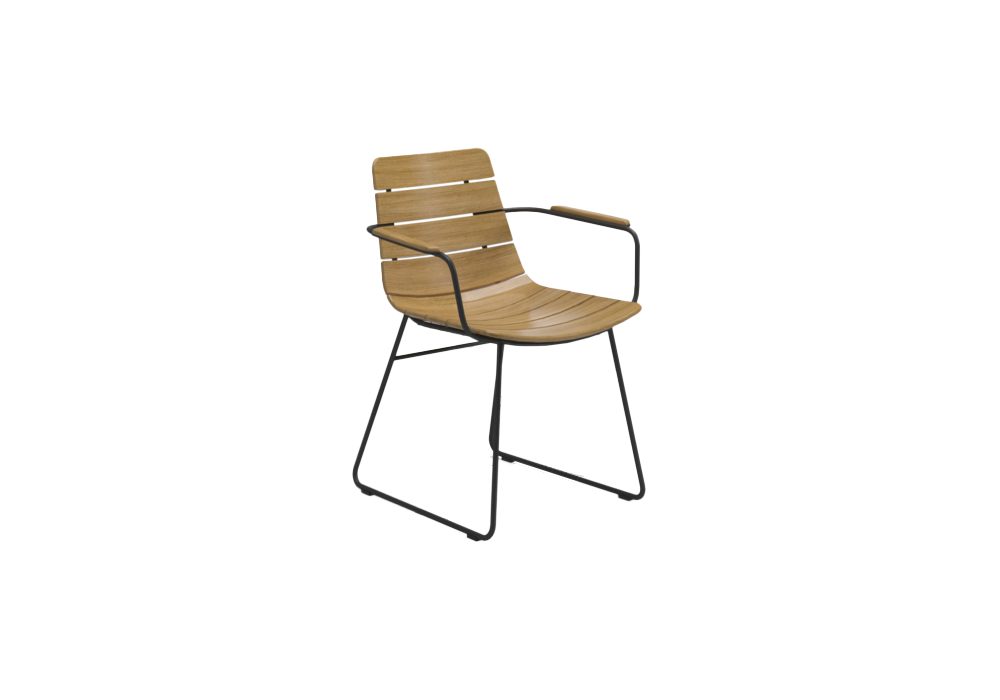 William diseñada por Mark Gabbertas para Gloster es una silla con estructura en acero inoxidable pintado en polvo. Asiento, respaldo y reposabrazos en teca con acabado natural.