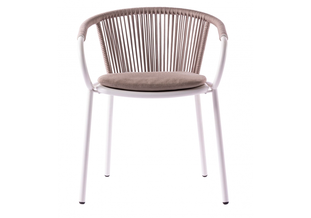 Gilda Lido diseñado por Scholten & Baijings para Cappellini es un sillón en acero inoxidable AISI 304 y aluminio con respaldo y brazos tejidos a mano. Posibilidad de añadir un cojín de asiento extraíble.