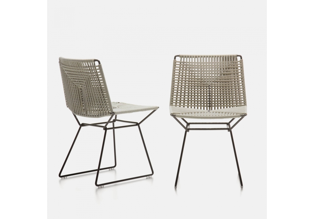 Neil Twist Ecrù diseñada por Jean Marie Massaud para MDF Italia es una silla con estructura portante realizada en acero pintado en blanco o negro plomo mate, tejida con cuerda de poliéster gris crudo mate.