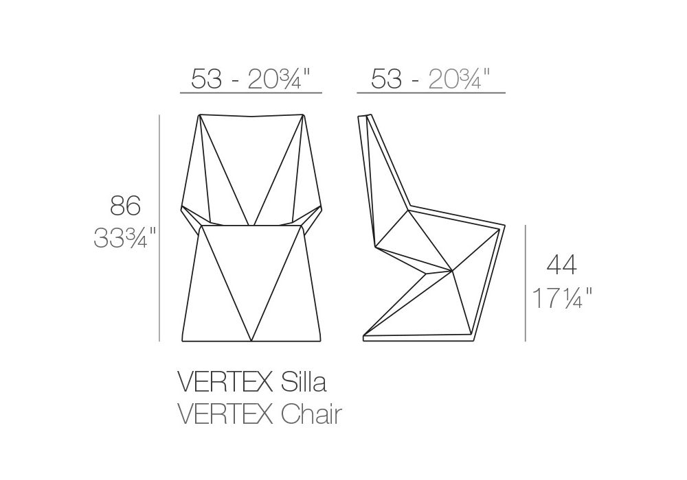 Vertex diseñada por Karim Rashid para Vondom es una silla realizada en resina de polietileno por rotomoldeo. 100% reciclable. Artículo adecuado para uso en interiores y exteriores. Disponible en diferentes acabados. Cojín de asiento bajo pedido.
