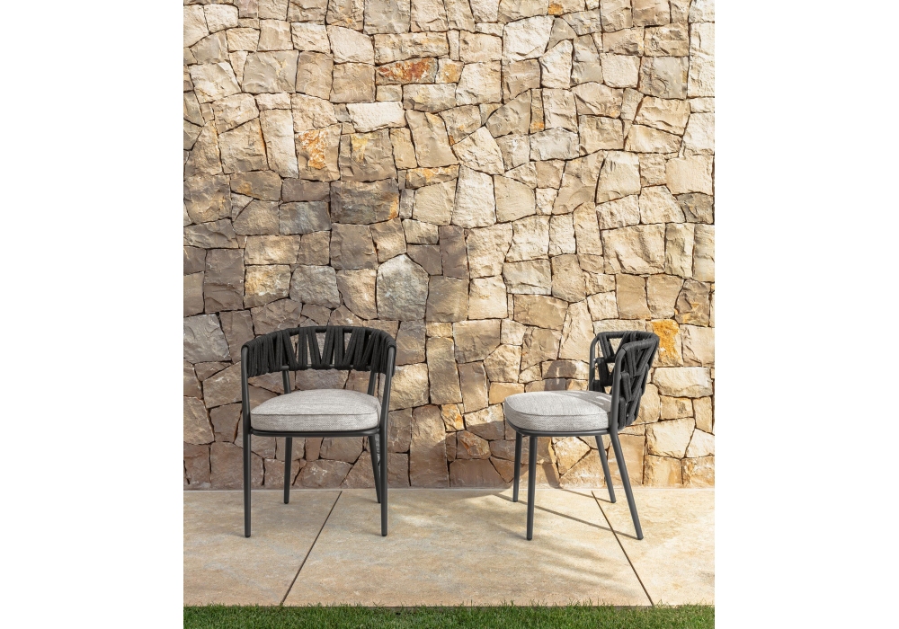 Swipe diseñado por Ludovica & Roberto Palomba para Talenti es un pequeño sillón con estructura de aluminio, asiento acolchado revestido de tela, respaldo tapizado con cuerdas sintéticas acolchadas. Disponible en diferentes acabados.