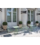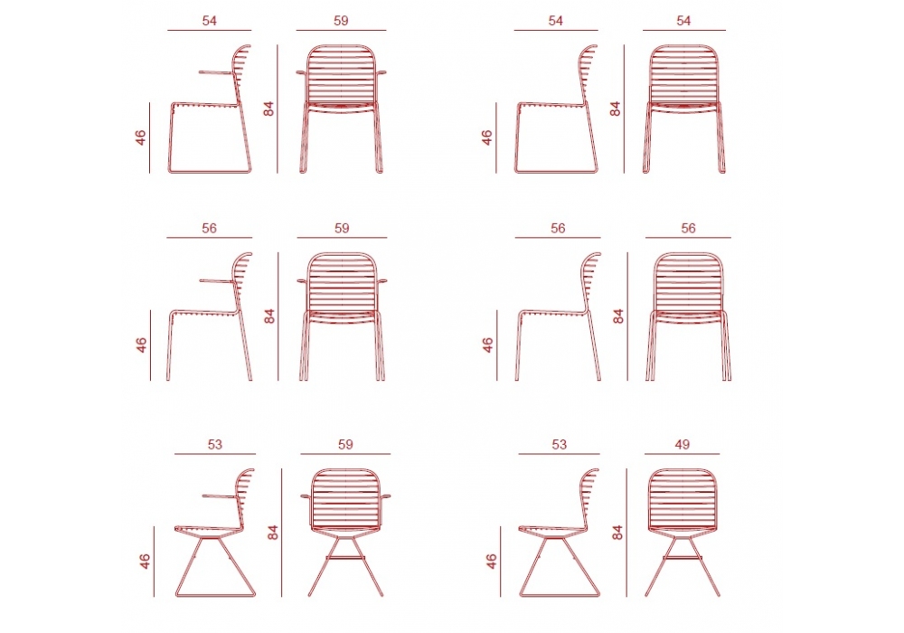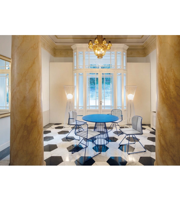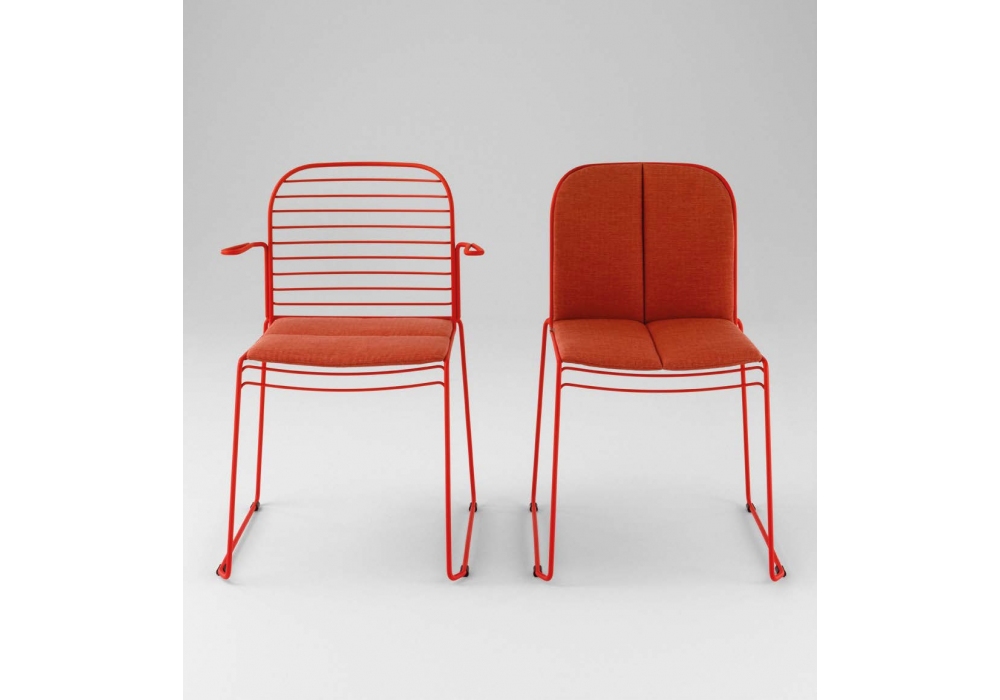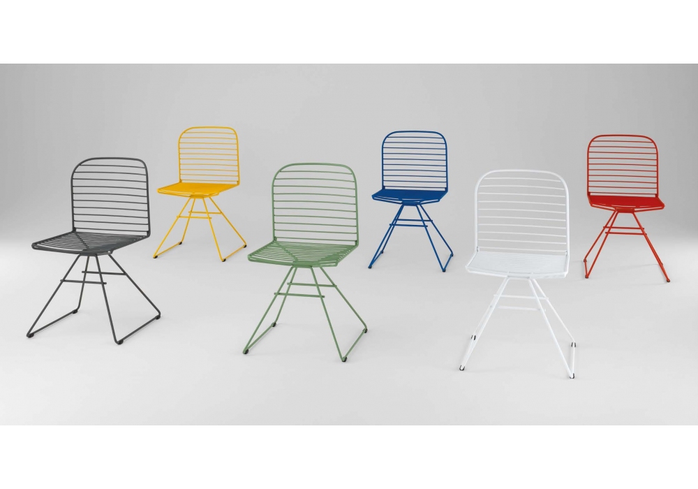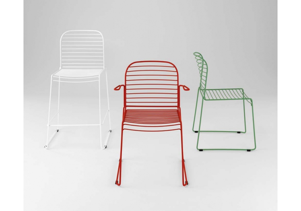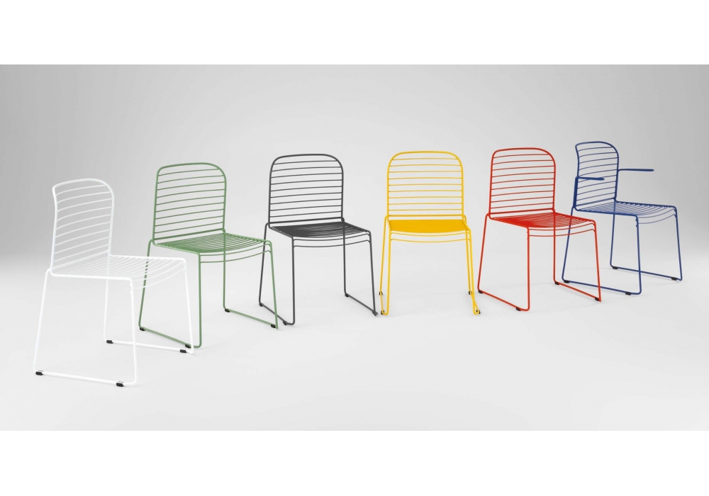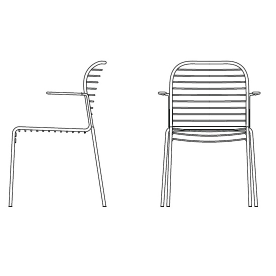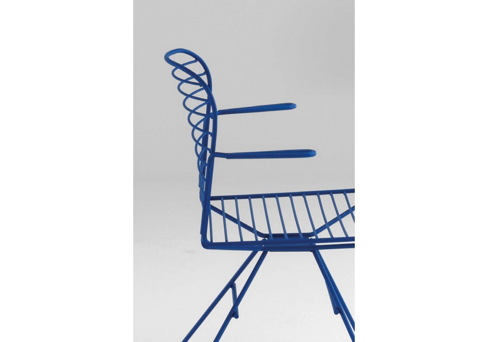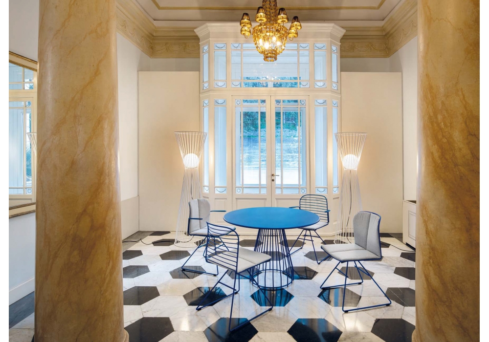 Infinito diseñada por Basaglia + Rota Nodari para Milani es una silla con o sin reposabrazos realizada con estructura de varilla de acero. Tratamiento protector para exteriores, polvos epoxi, acabado gofrado. Disponible en diferentes acabados y modelos. Cojín de tela disponible bajo pedido.