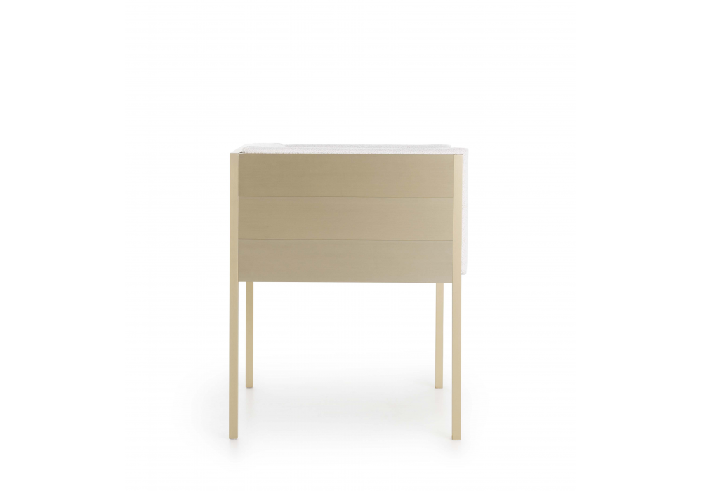 GBmodular diseñado por José A. Gandía-Blasco Canales para Gandia Blasco es un sillón de comedor realizado en aluminio anodizado grabado al ácido, acabado liso o estriado. Cojines de asiento y respaldo fabricados en gomaespuma de poliuretano y fibra de poliéster con tejido hidrófugo. El acolchado se realiza en la misma dirección que las lamas de aluminio. Disponible en diferentes acabados.