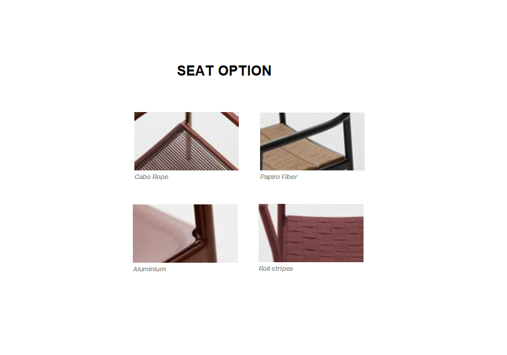 Passage Outdoor diseñada por Ronan Bouroullec para Kettal es una silla de exterior con estructura metálica con acabado brillante o texturizado. El asiento está hecho de aluminio, papiro o cuerda del mismo color que la estructura.