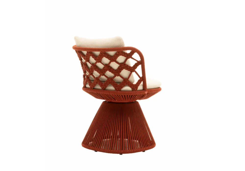 Flair O' diseñada por Monica Armani para B&B Italia Outdoor es una silla con estructura de aluminio pintado y tejido de polipropileno en varios acabados. Disponible con cojines de asiento y respaldo en diferentes telas.