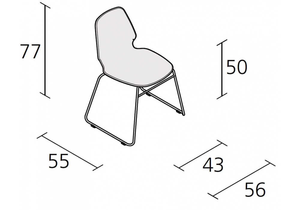 517 Tindari Sledge diseñada por Alfredo Häberli para Alias es una silla trineo en acero pintado o estructura cromada, carcasa en material plástico y tapizada en piel o tela. Disponible también en versión apilable.