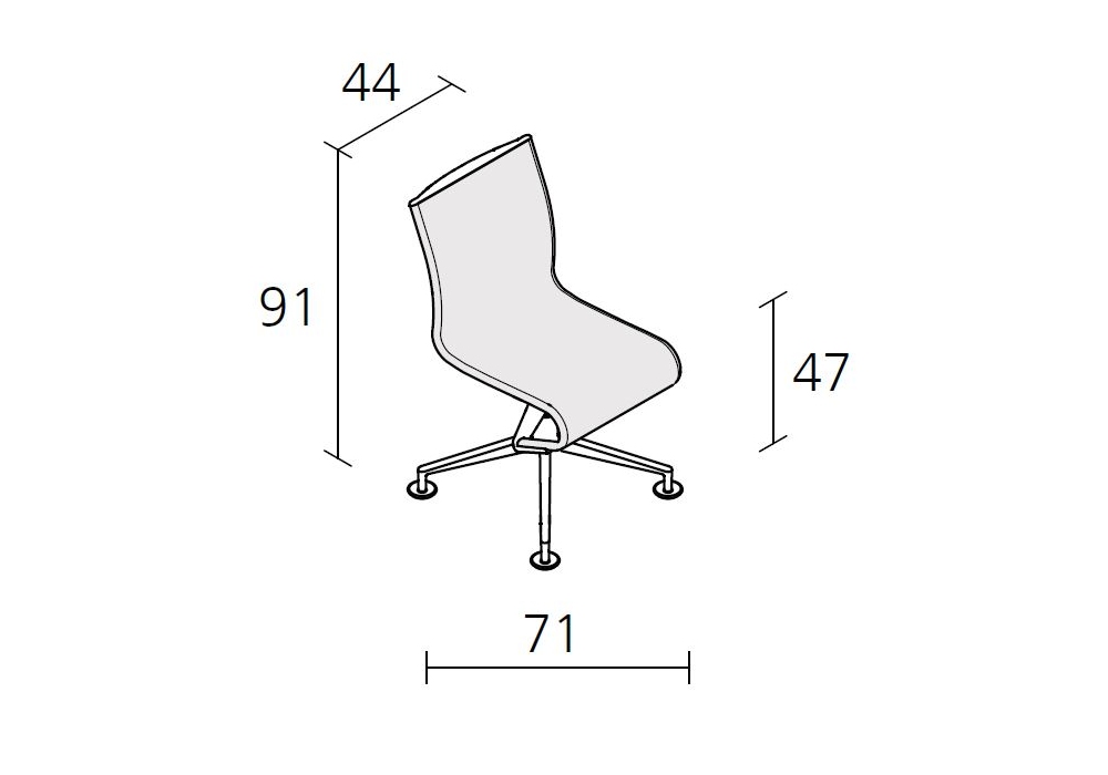 436 Meetingframe 44 Colors diseñada por Alberto Meda para Alias es una silla giratoria con estructura de aluminio extruido y base de 4 aspas. El asiento y el respaldo están en una red ignífuga disponible en diferentes acabados. La tela se monta sobre una malla del mismo color que la estructura o tela.