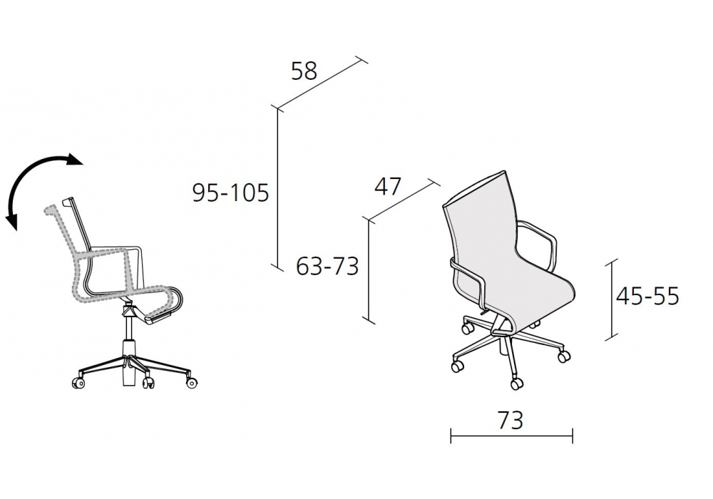 445 Rollingframe + Tilt 47 diseñada por Alberto Meda para Alias es una silla con reposabrazos y ruedas, base giratoria 5 estrellas. Estructura realizada en perfil de aluminio extrusionado y elementos de aluminio inyectado. Asiento y respaldo en malla ignífuga de poliéster. La tela está montada sobre una malla del mismo color que la estructura.
