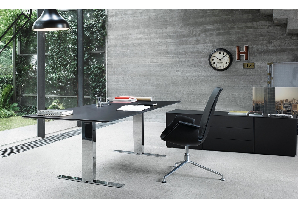 FK diseñada por Preben Fabricius & Jørgen Kastholm por Walter Knoll es una hermosa silla con base giratoria de aluminio y revestimiento disponible en diferentes pieles. FK con su forma única, contornos claros y líneas limpias es un brillante ejemplo de sustancia eficaz. También disponible en diferentes modelos y configuraciones.