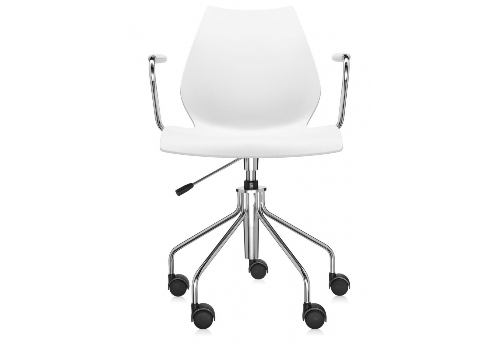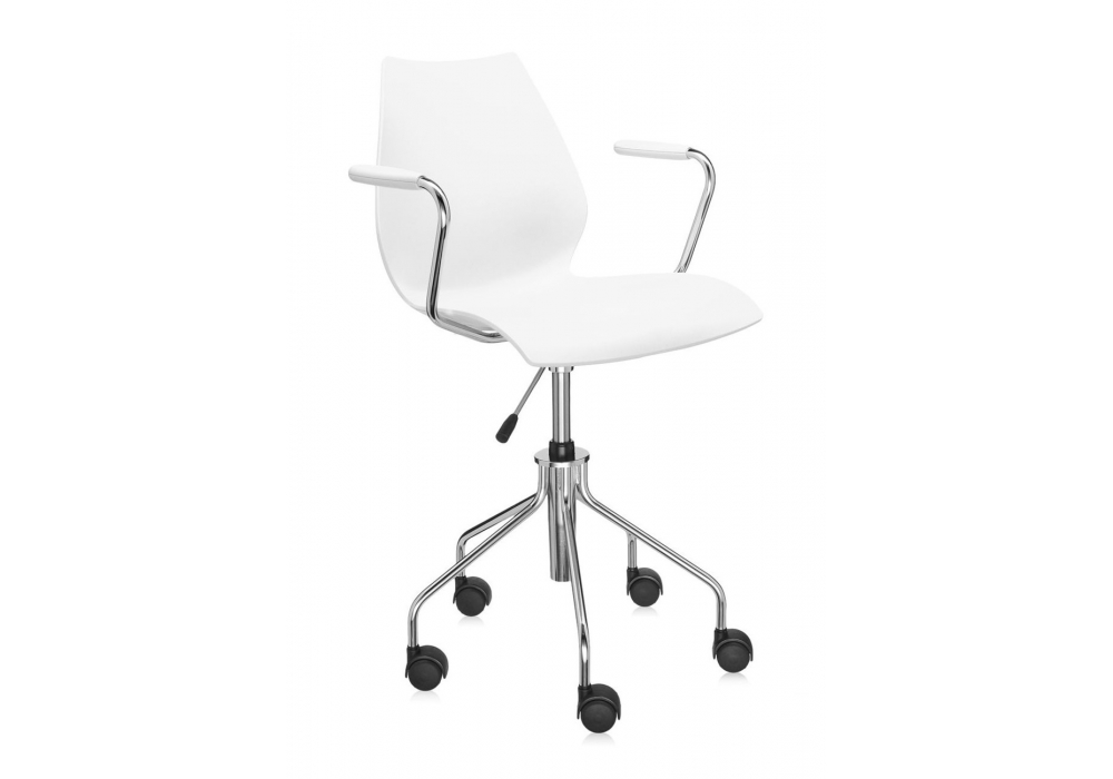 Maui diseñada por Vico Magistretti para Kartell es una silla con ruedas con o sin reposabrazos realizada con estructura de acero cromado y carcasa de polipropileno teñido en pasta. Disponible en diferentes acabados.