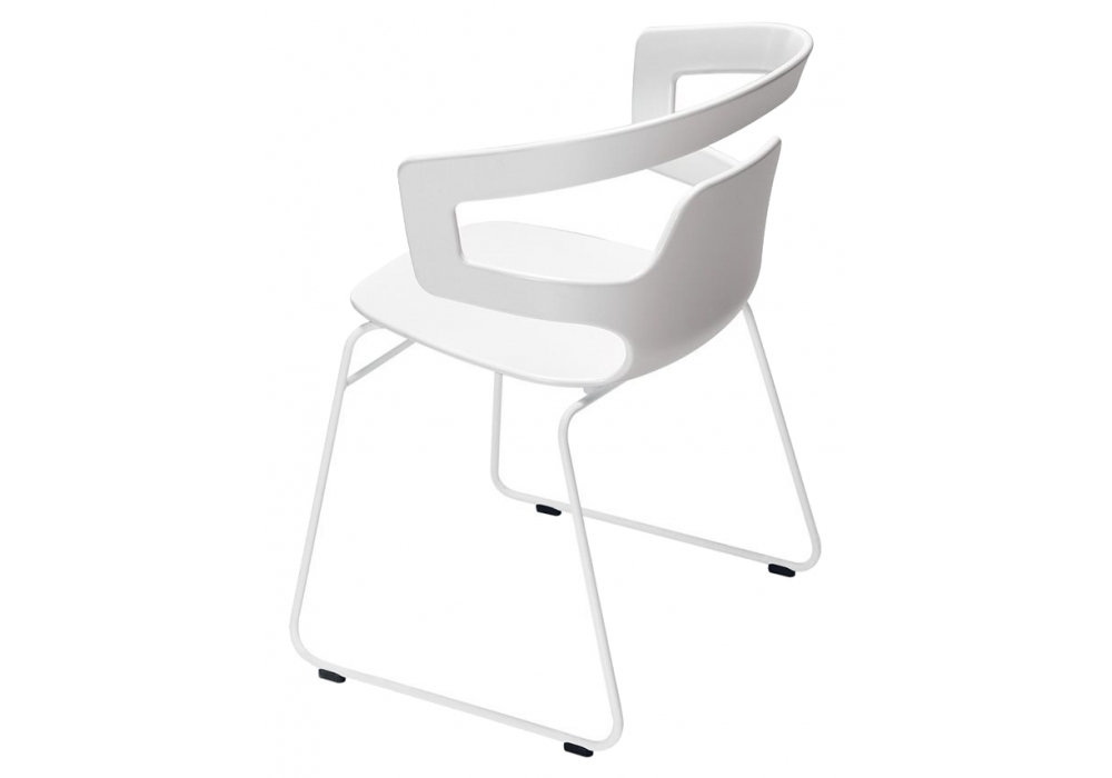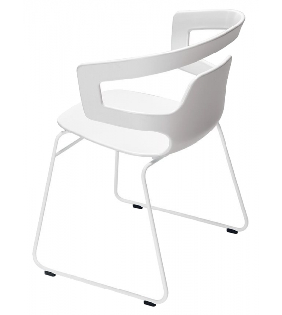 Segesta 500 diseñada por Alfredo Häberli para Alias es una silla tipo trineo con reposabrazos, carcasa en estructura de plástico blanco y base en acero pintado disponible en diferentes acabados.