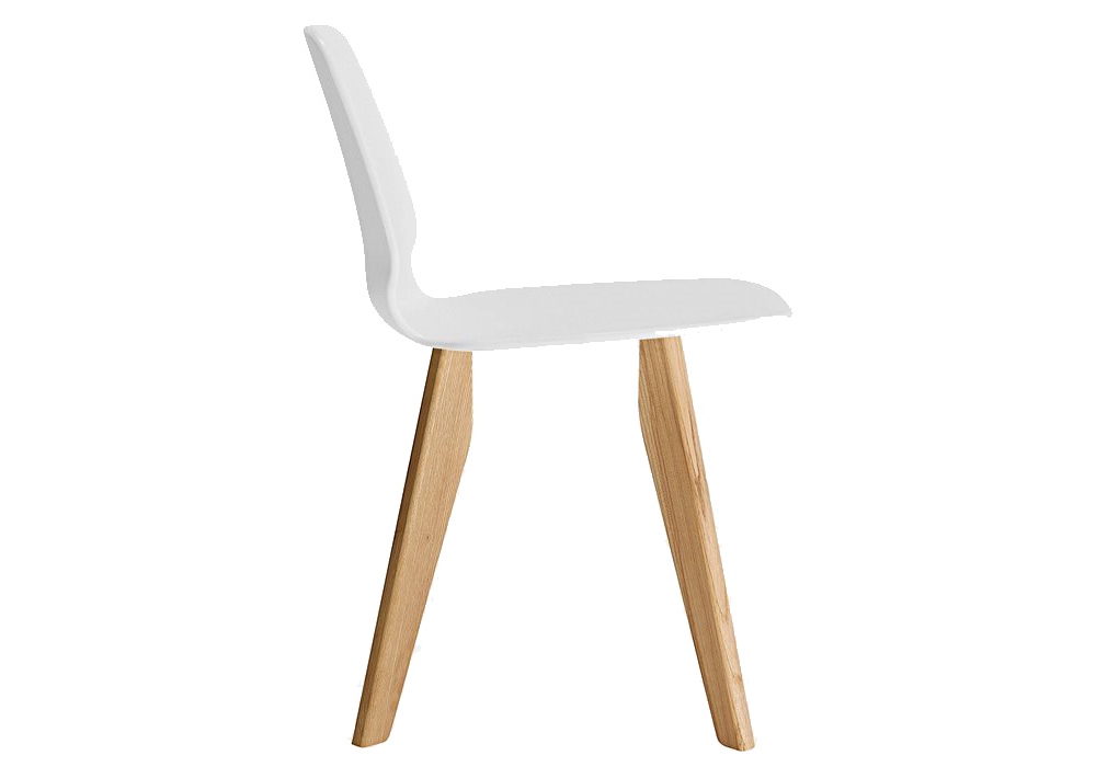 Selinunte Wood 561 diseñada por Alfredo Häberli para Alias es una silla, carcasa en estructura de plástico blanco y base en madera maciza de roble. Disponible en diferentes acabados.