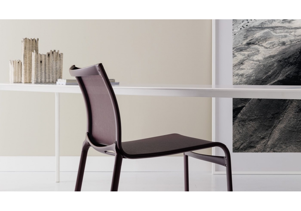 417 Highframe 40 diseñada por Alberto Meda para Alias es una silla con reposabrazos en perfil de aluminio extruido, asiento y respaldo en red ignífuga de poliéster. Disponible en diferentes acabados.