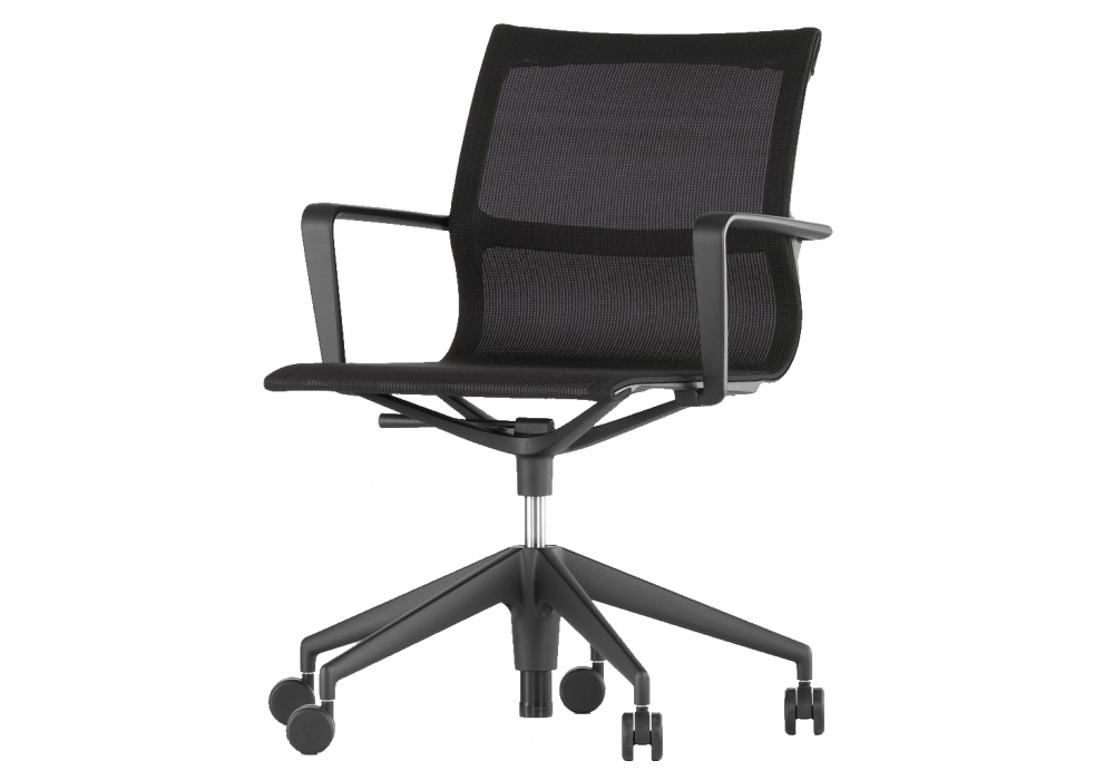 Physix Studio diseñado por Alberto Meda para Vitra es una silla de oficina giratoria. Las medidas se tomaron de acuerdo con EN 1335-1. Physix Studio, es una silla de oficina cómoda y ergonómica con estructura flexible y reposabrazos. El asiento y el respaldo son de una sola pieza en tejido de punto TrioKnit o tejido FleeceNet. Base de cinco estrellas en aluminio con acabado brillante o pintado.