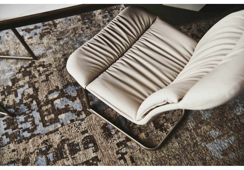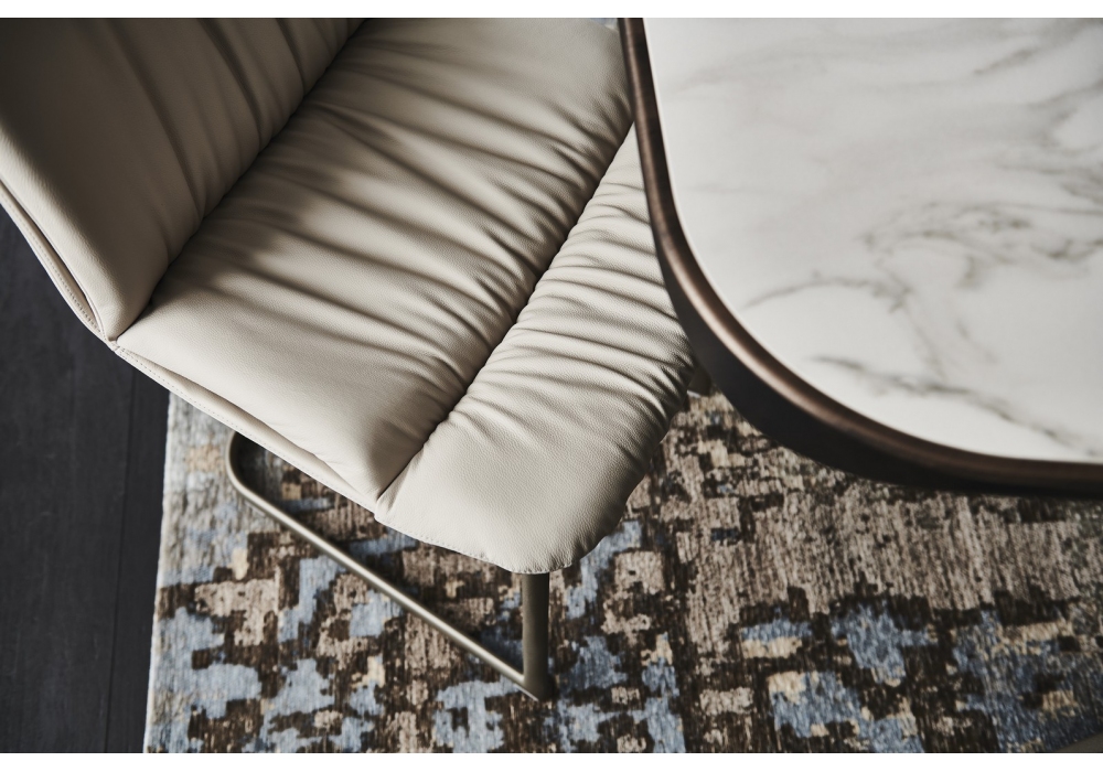 Kelly Cantilever diseñada por Archirivolto para Cattelan Italia es una silla con base en acero barnizado gofrado y revestimiento en tejido, synthetic nubuck, micro nubuck, ecopiel o piel. Disponible en dos tamaños.